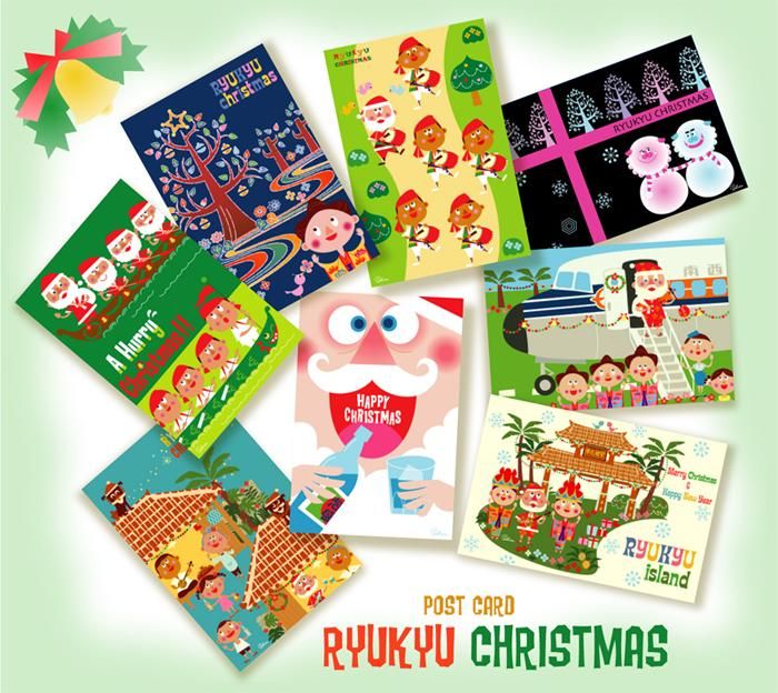 南国沖縄のクリスマスをイメージしたポストカード8枚セットです